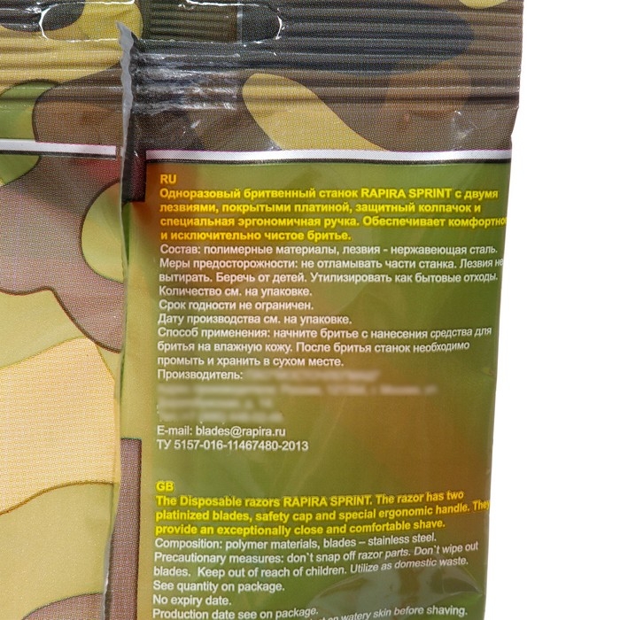 Бритвенные станки одноразовые Rapira Sprint,. Одноразовые бритвы Rapira Sprint изготовлены из высококачественной нержавеющей стали. Бреющая головка обеспечивает комфортное бритье благодаря двум последовательно расположенным лезвиям, зафиксированным под удобным углом наклона. Оба лезвия покрыты платиновым напылением и защищены специальной крышечкой.