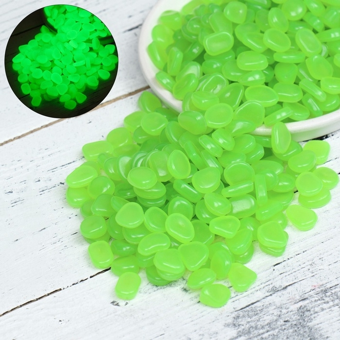 Декоративные камни для аквариума, светятся в темноте, 8-11 мм, 200 г, зелёные