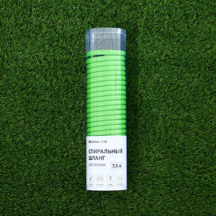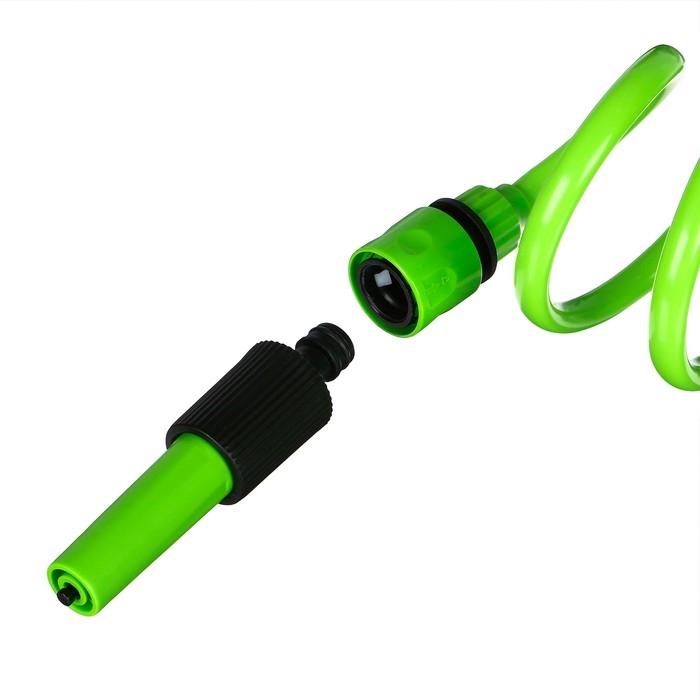 Шланг поливочный спиральный, 7,5 м, быстросъёмный, с насадкой для полива и штуцером, зелёный, Greengo