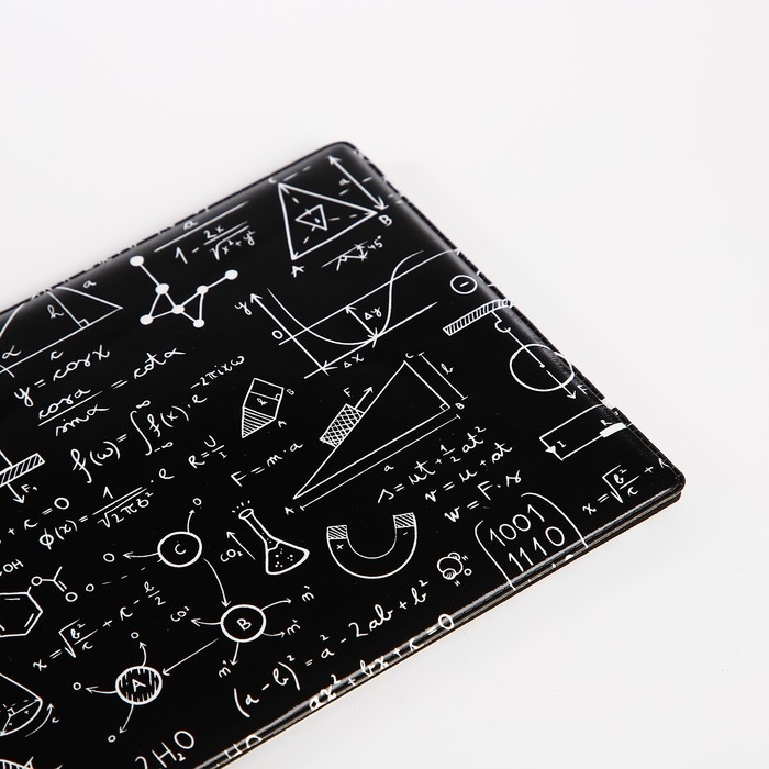 - Стильный дизайн: Оригинальный рисунок «Уравнения» привлекает внимание и делает обложку ярким аксессуаром.