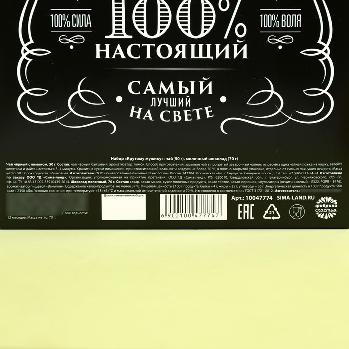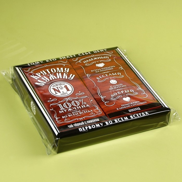 Подарочный набор «Крутому мужику»: чай чёрный с лимоном 50 г., молочный шоколад 70 г.