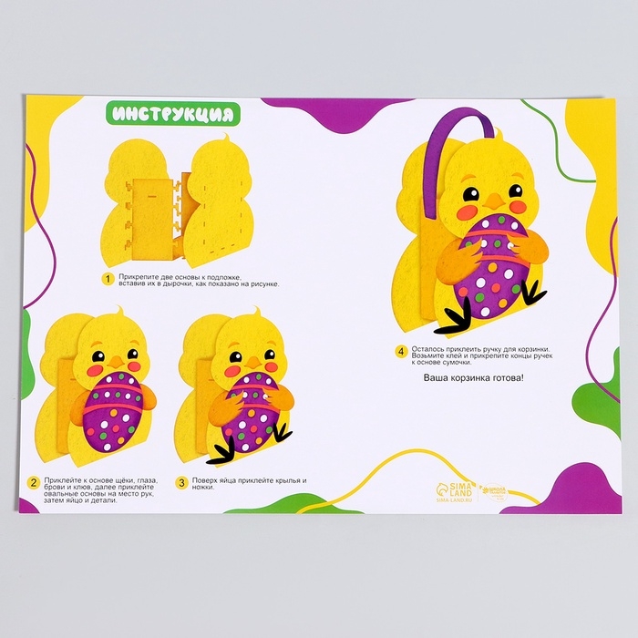 Набор для создания пасхальной корзинки из фетра «Цыпленок»