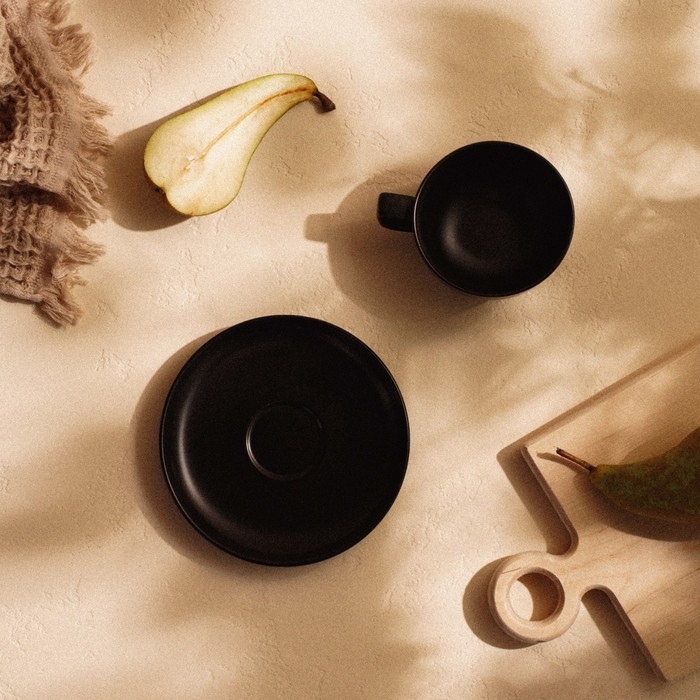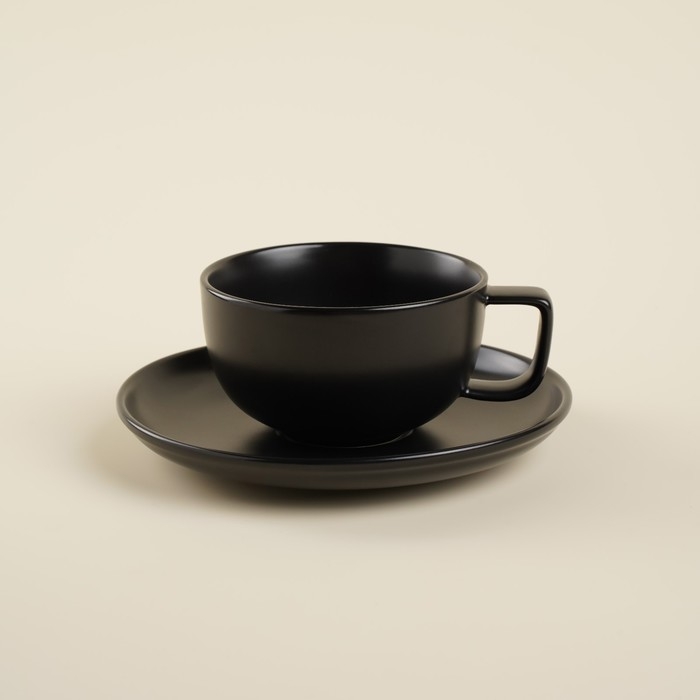 Чайная пара фарфоровая SL Home «Дарк», 2 предмета: чашка 300 мл, блюдце d=16,5 см, цвет чёрный