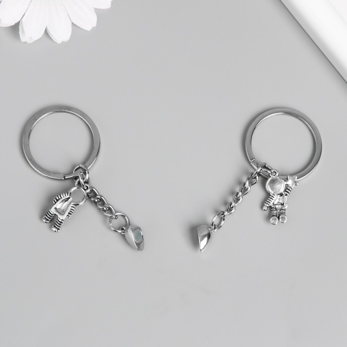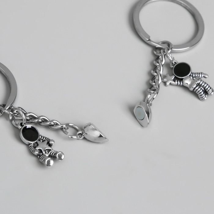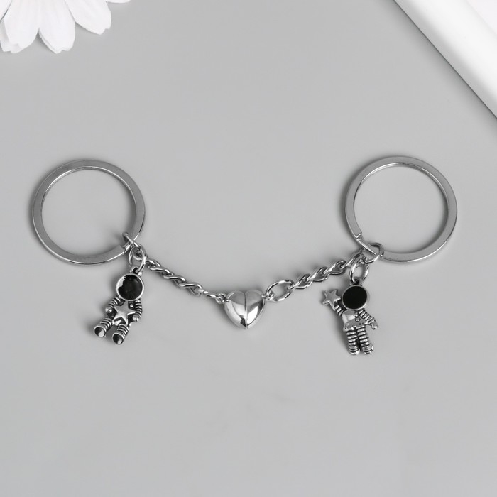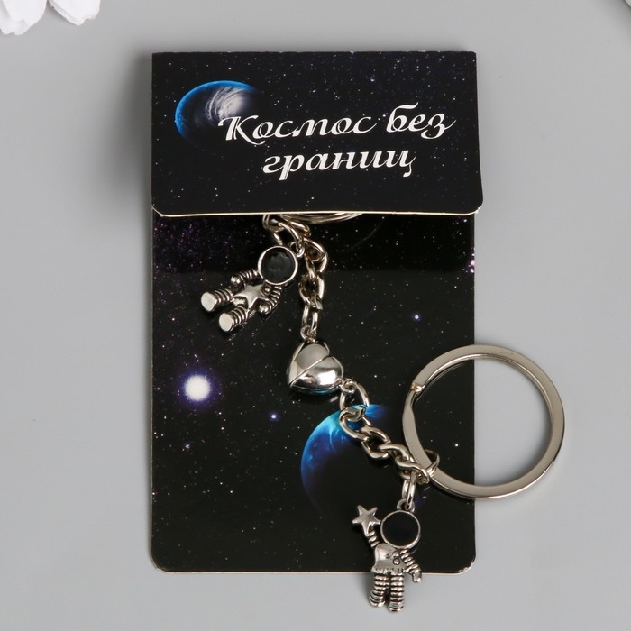 Брелок металл 2в1 "Космонавты с сердцем и звездочками"