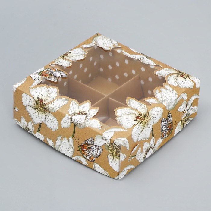 Коробка для конфет, кондитерская упаковка, 4 ячейки, «Крафт», 10.5 х 10.5 х 3.5 см