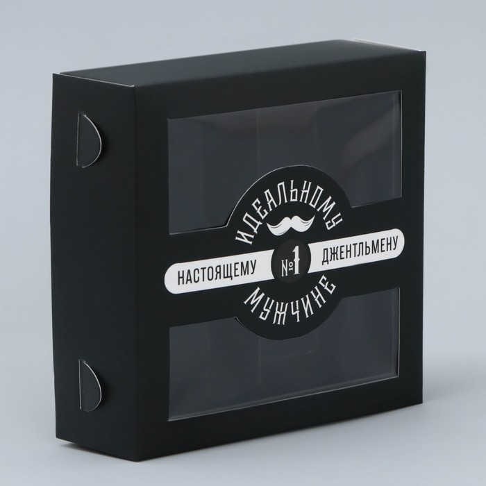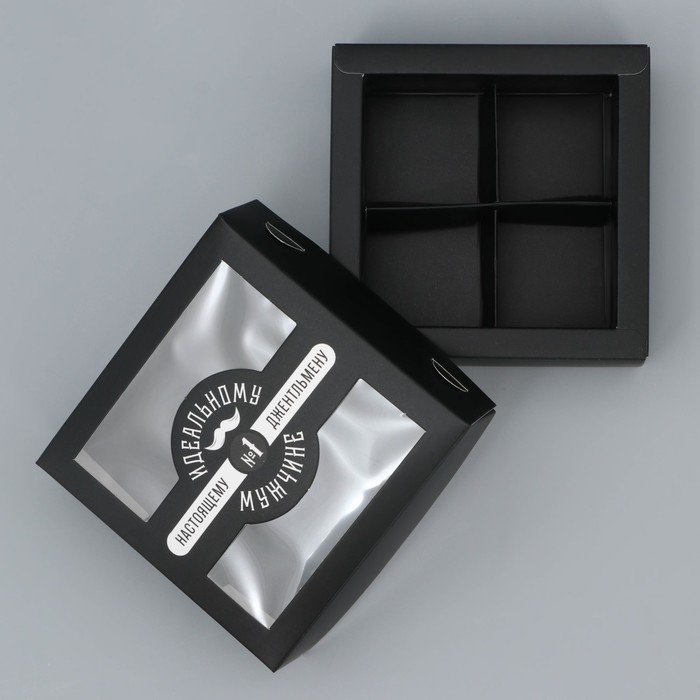Коробка для конфет, кондитерская упаковка, 4 ячейки, «Настоящему мужчине», 10.5 х 10.5 х 3.5 см