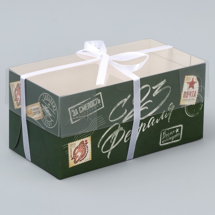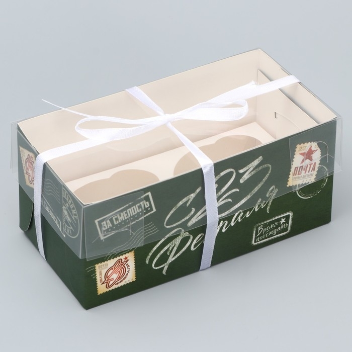 Коробка для капкейка, кондитерская упаковка, 2 ячейки, «23 февраля», 16 х 8 х 7.5 см