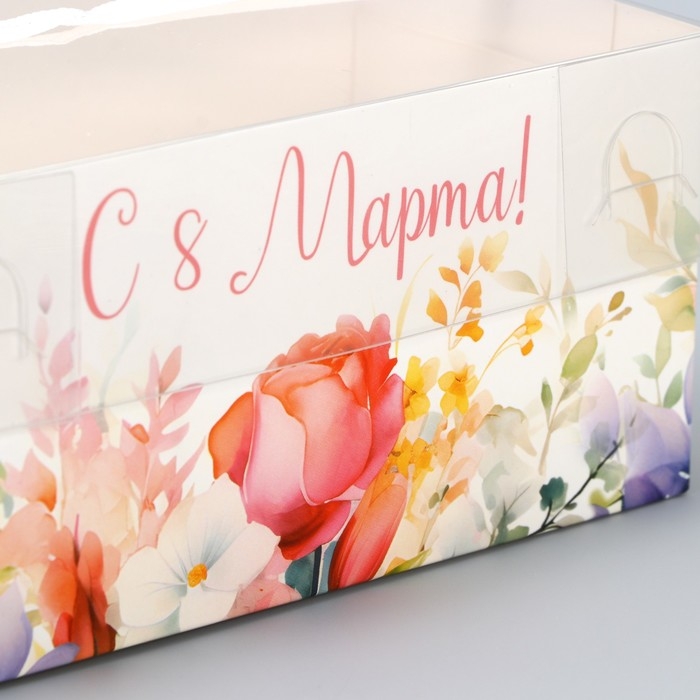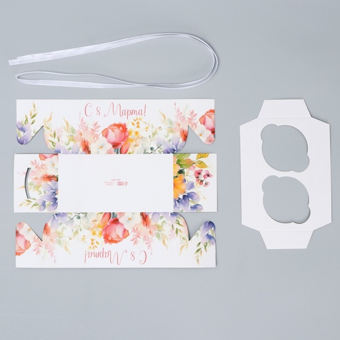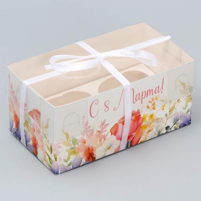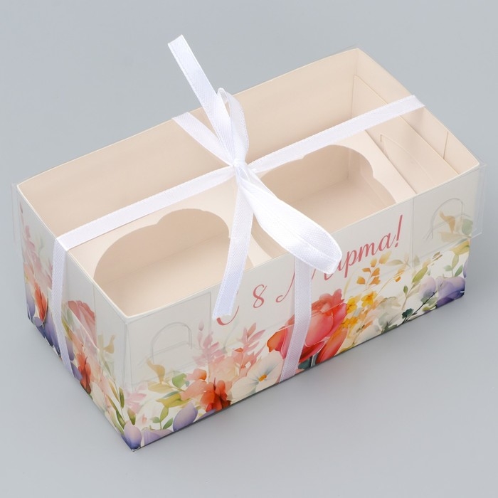 Коробка для капкейка, кондитерская упаковка, 2 ячейки «8 марта», 16 х 8 х 7.5 см