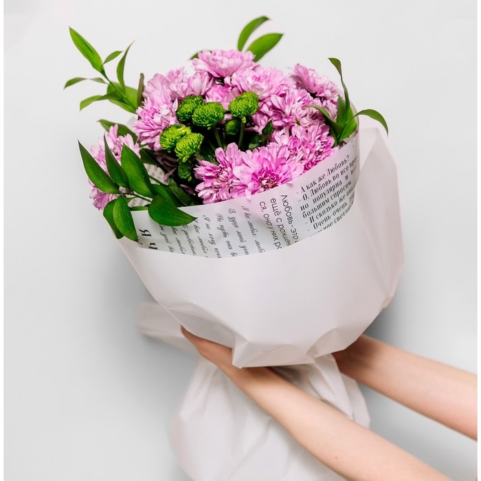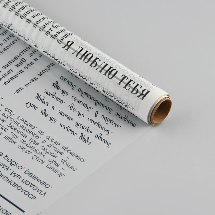 Плёнка для цветов упаковочная глянцевая прозрачная «Газета», белая, 0.6 x 10 м