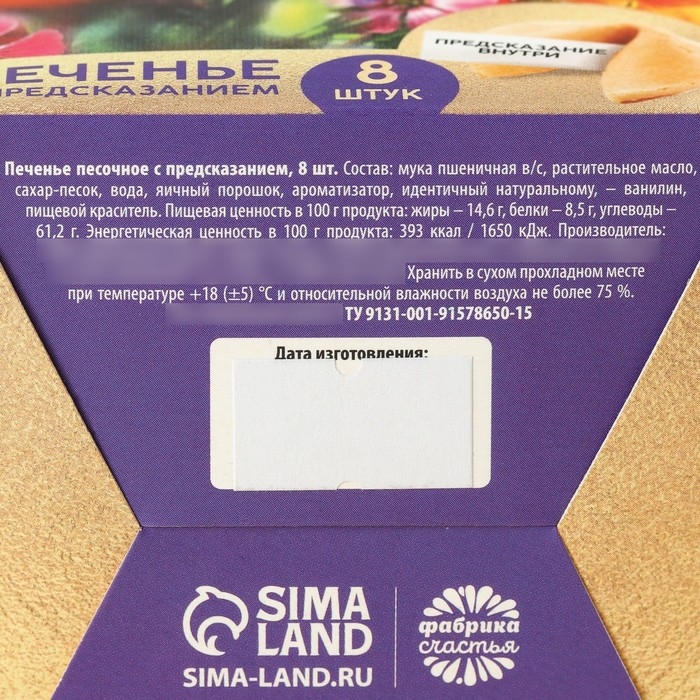 Печенье с предсказанием «Открой» цветное, 1 шт х 6 г.