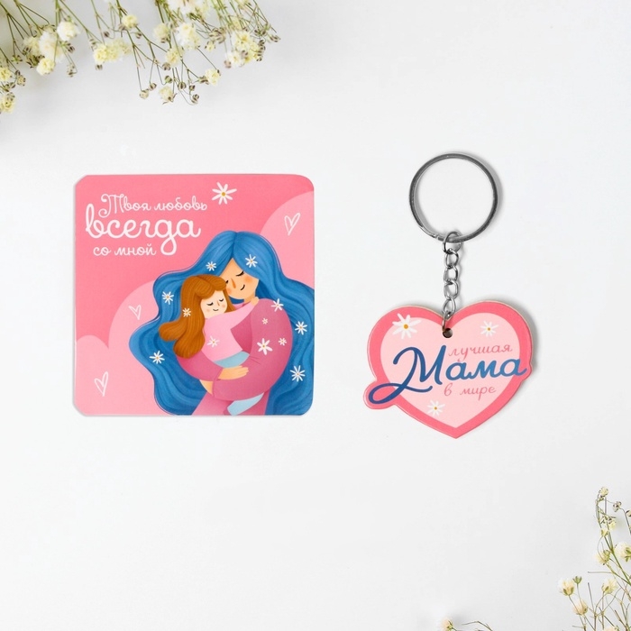 Брелок для ключей и магнит на День матери «Лучшая мама», подарочный набор, 14,5 х 12,8 см