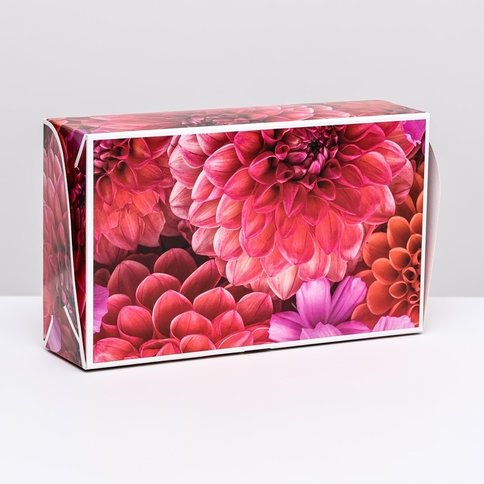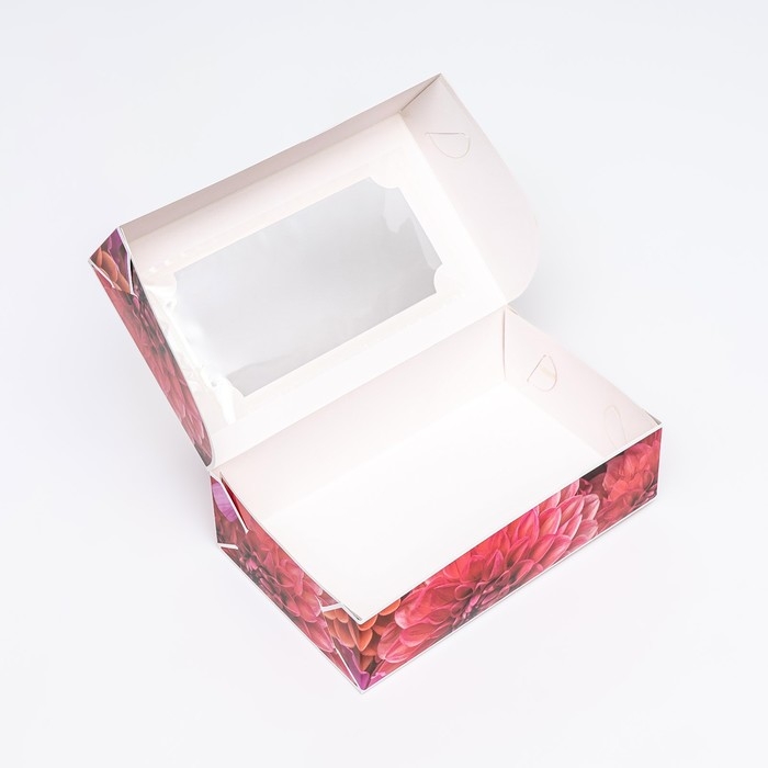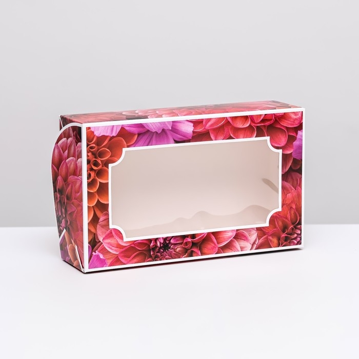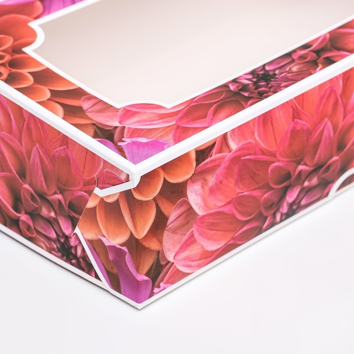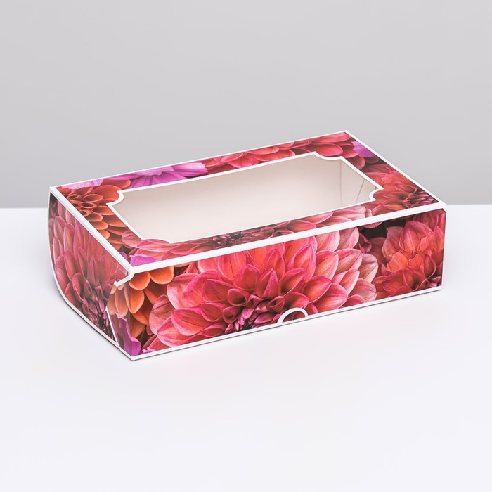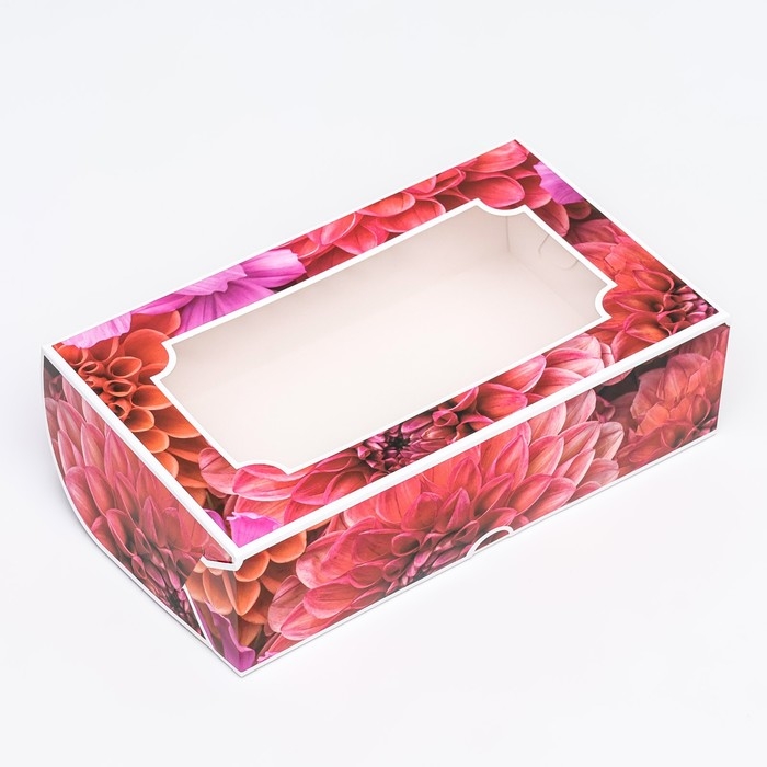 Коробка складная с окном под зефир "Георгины", 25 х 15 х 7 см