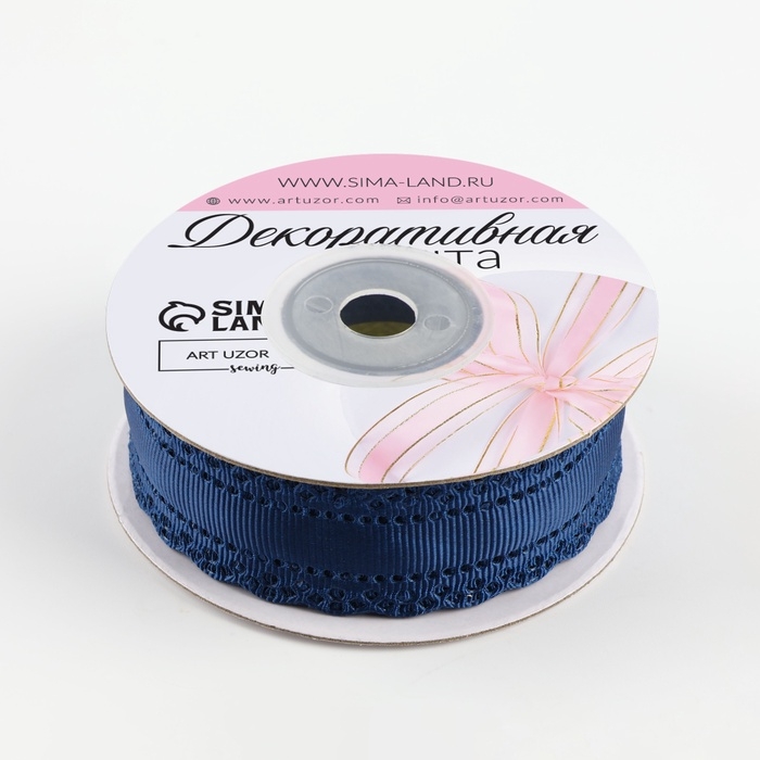 Лента декоративная, репсовая, с ажурным краем, 25 мм × 9,1 ± 0,5 м, цвет тёмно-синий