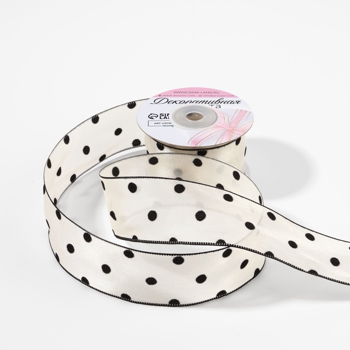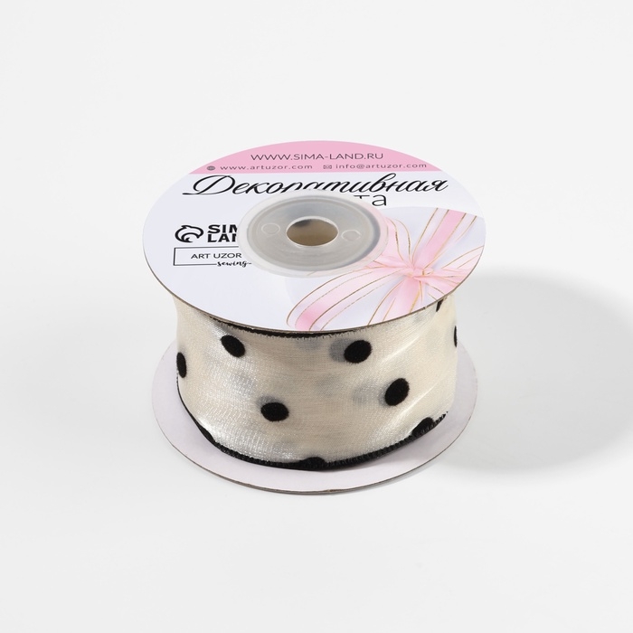 Лента капроновая «Горох», с бархатным тиснением, 25 мм × 9,1 ± 0,5 м, цвет бежевый/чёрный