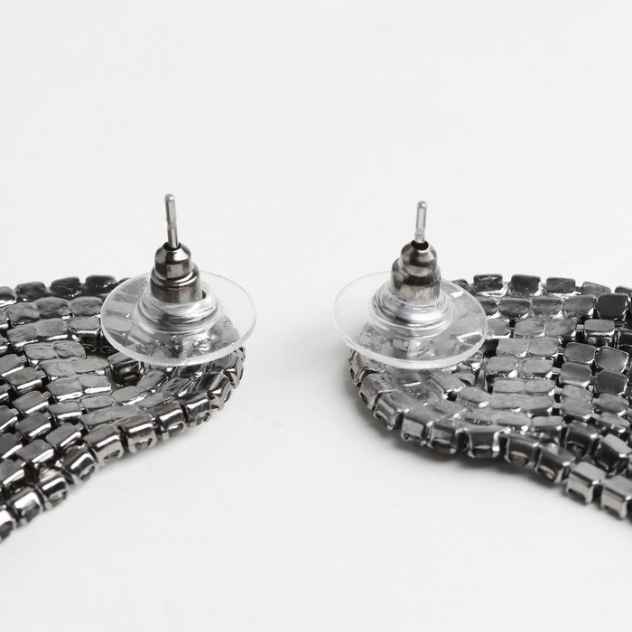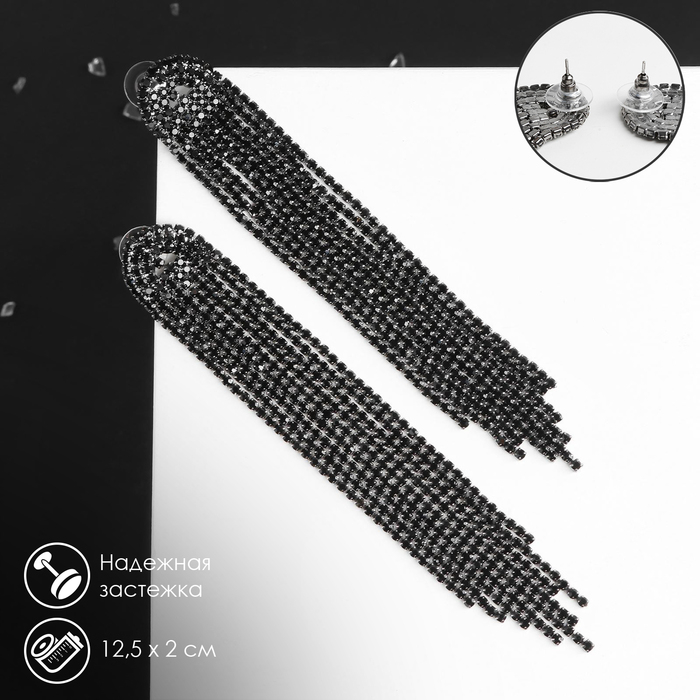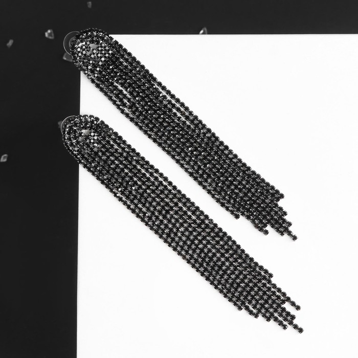 Серьги висячие со стразами «Капли» дорожка, цвет чёрный в серебре, 6,2 см
