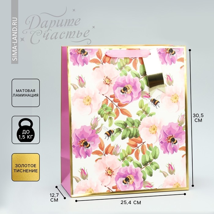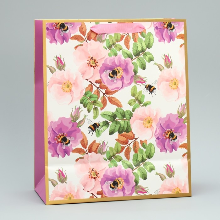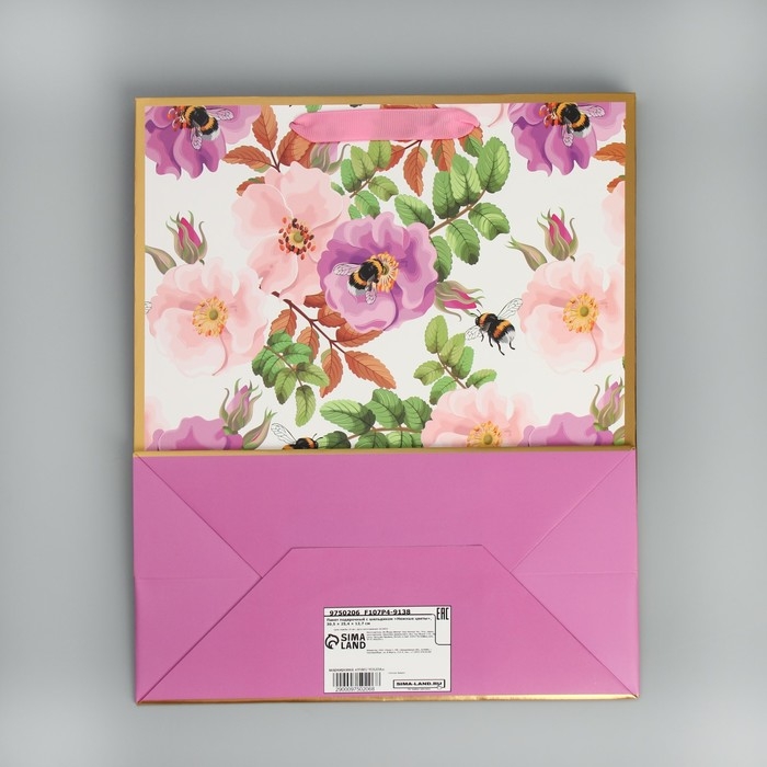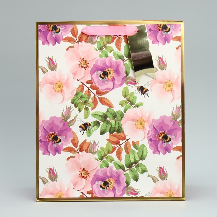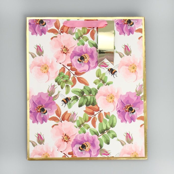 Пакет подарочный, упаковка, «Нежные цветы», 30.5 х 25.4 х 12.7 см