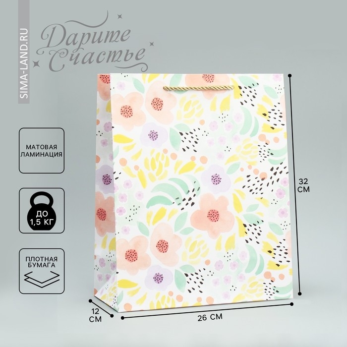 Пакет подарочный, упаковка, «Цветы» 32 х 26 х 12 см