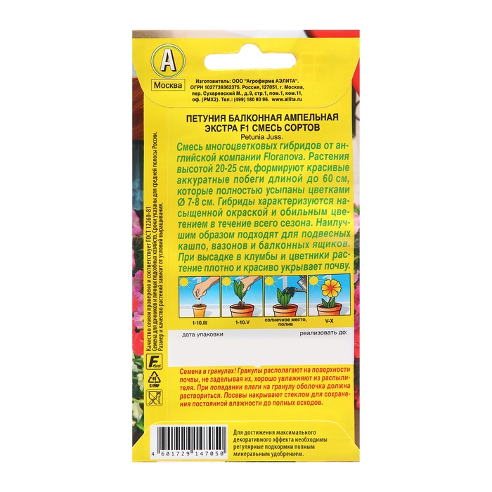 Семена Цветов Петуния балконная "Экстра", F1, смесь сортов, 5 шт