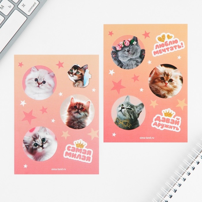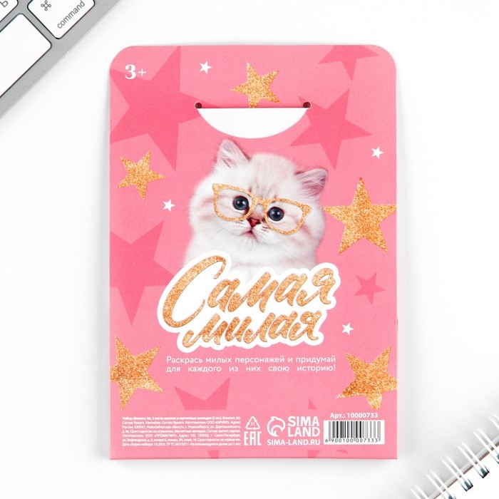 Набор блокнот А6, 32 листа, наклейки, магнитные закладки «Милый котенок»