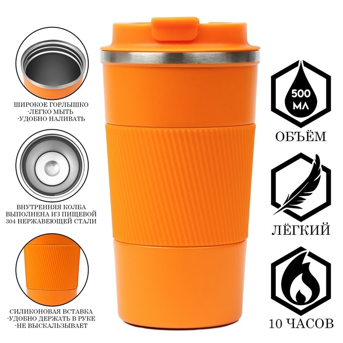 Термокружка, 500 мл, Original "Мастер К.", сохраняет тепло 10 ч, оранжевая