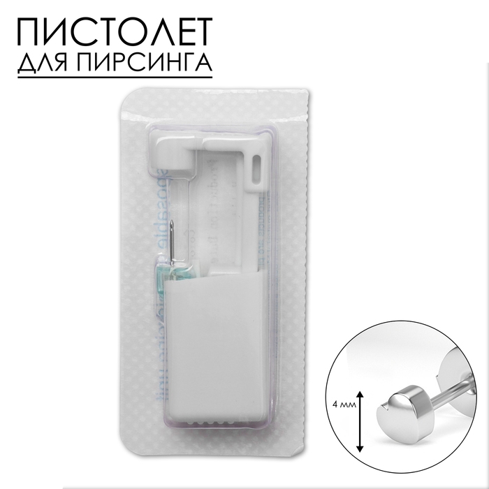 Пистолет одноразовый для пирсинга, серьга в комплекте «Мини», 4 мм, цвет чёрный в серебре