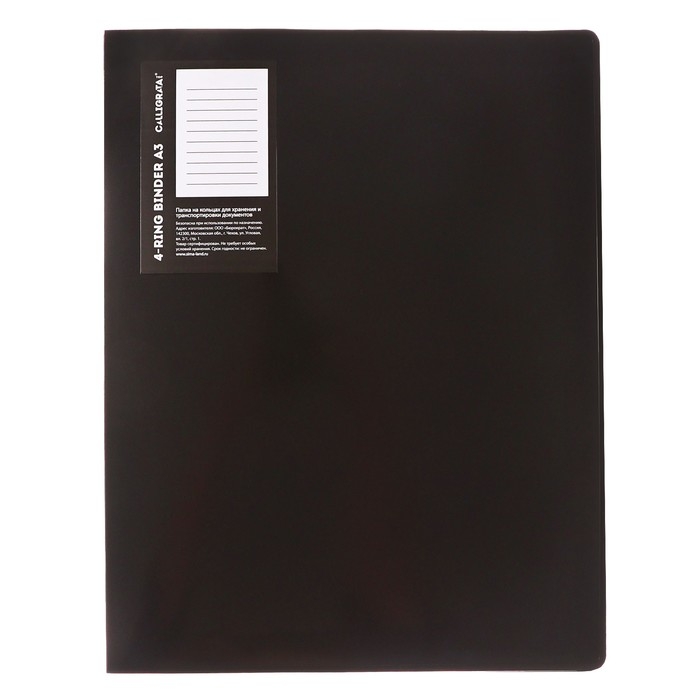 Папка на 4 кольцах А3, Calligrata "Standard" 27мм, 800 мкм, вертикальная, чёрная