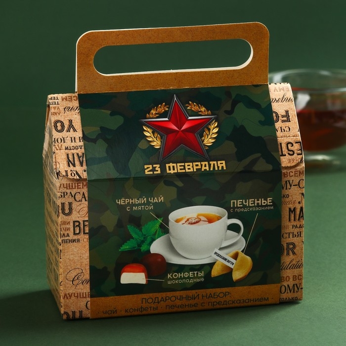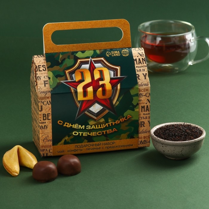 Набор "С днём защитника отечества" чай + печенье + конфеты