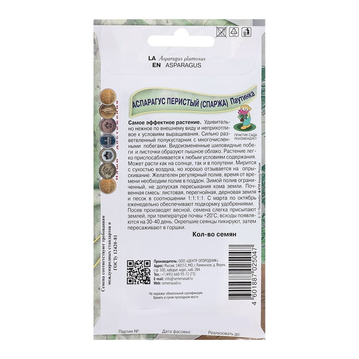 Семена Аспарагус "Шпренггера", ц/п, 5 шт