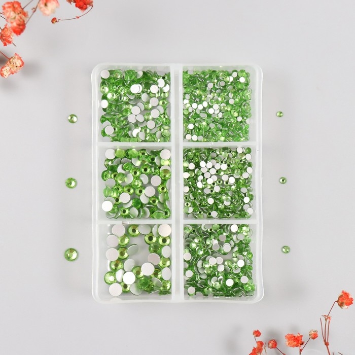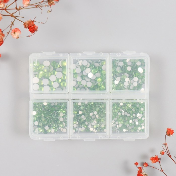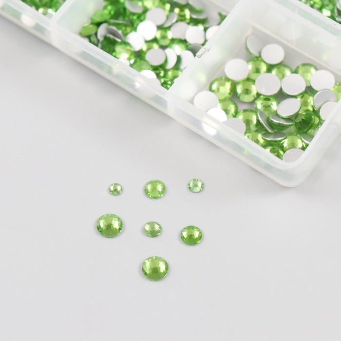 Декор для творчества стекло "Стразы. Зелёный" d=2-4,8 мм н-р 1188 шт 6х8х1,5 см