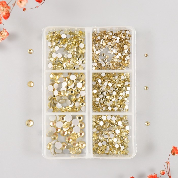 Декор для творчества стекло "Стразы. Светло-жёлтый" d=2-4,8 мм н-р 1188 шт 6х8х1,5 см