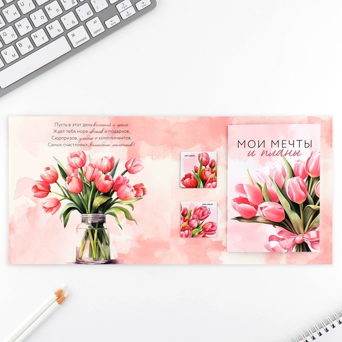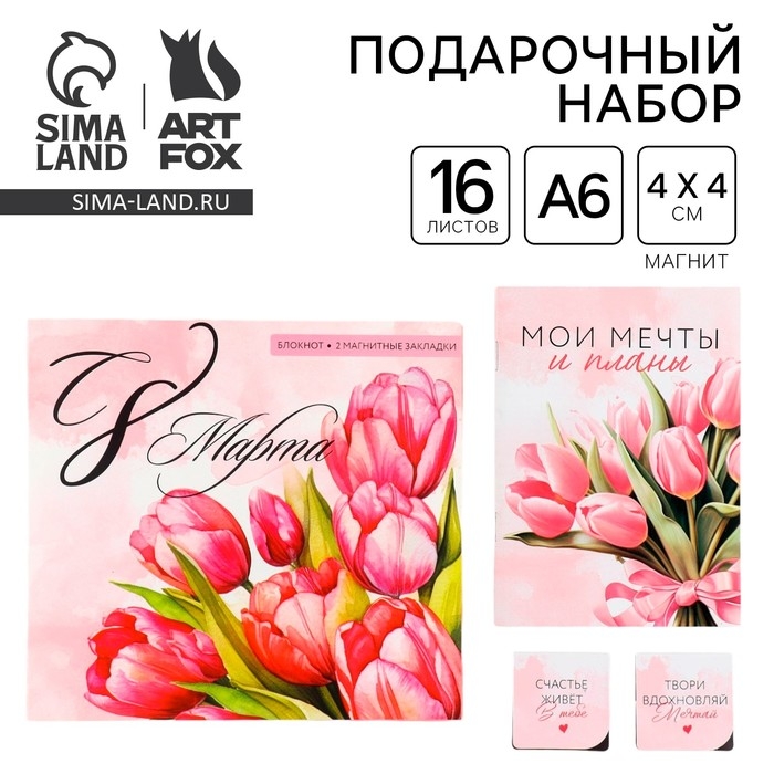 Подарочный набор: блокнот и магнитные закладки 2 шт. «Самой нежной! С 8 марта»