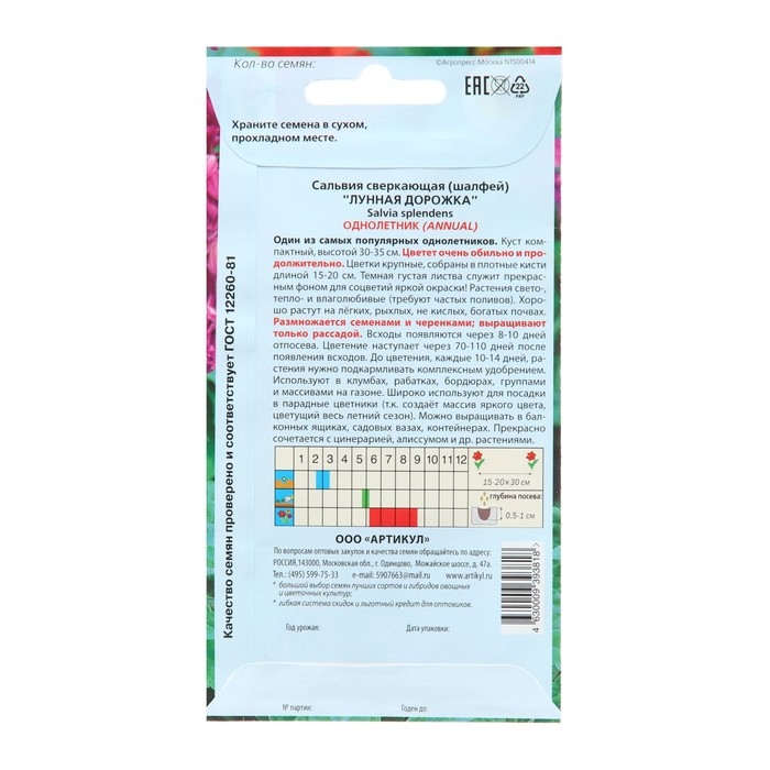 Семена Цветов Сальвия "Лунная дорожка", 10 шт