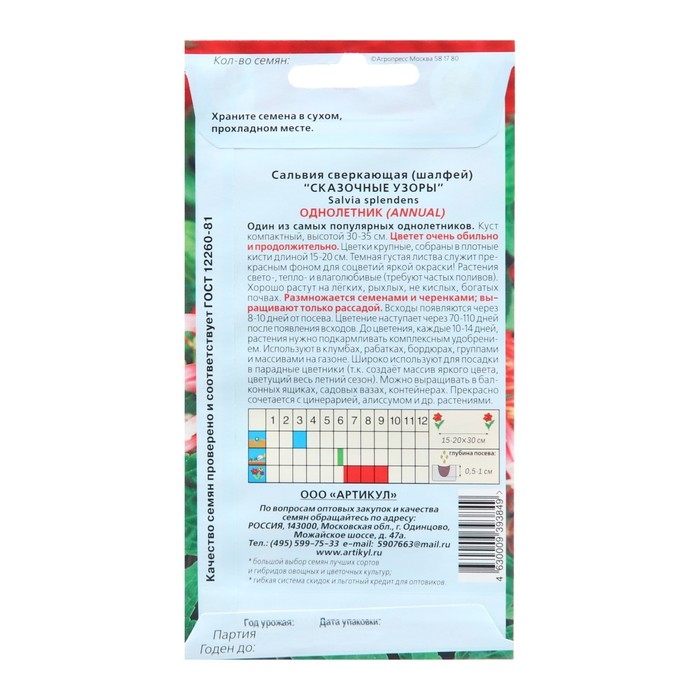 Семена цветов Сальвия "Редди Вайт", сюрпрайз, сверкающая, Сем. Алт, ц/п, 5 шт
