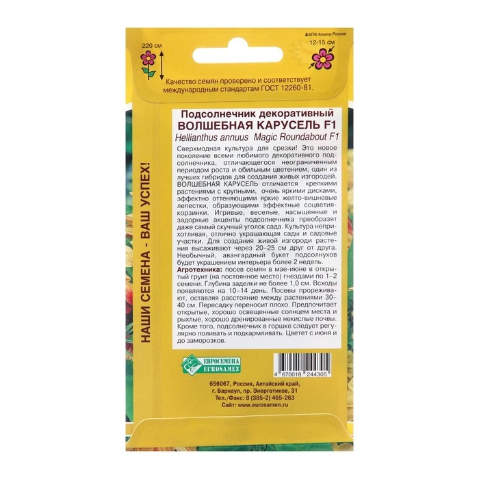Семена Подсолнечник декоративный "Волшебная карусель", 5 шт