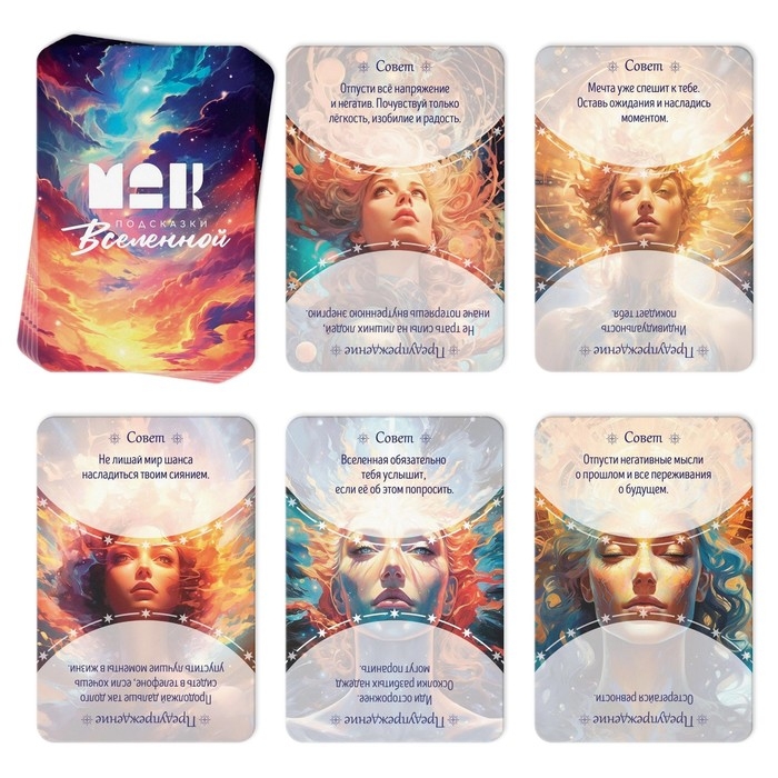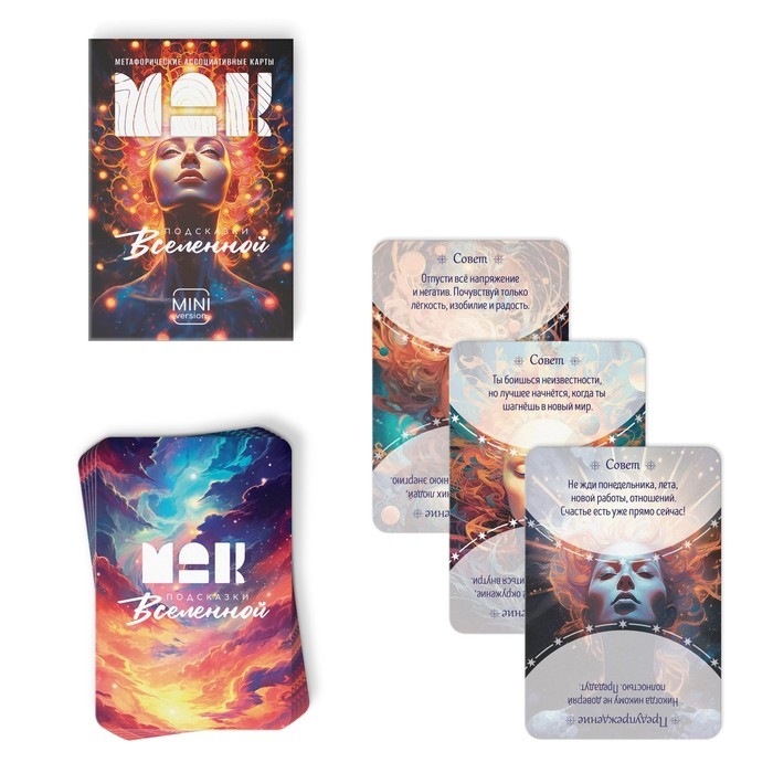Метафорические ассоциативные карты «Подсказки вселенной», 50 карт (6х9 см), мини версия, 16+