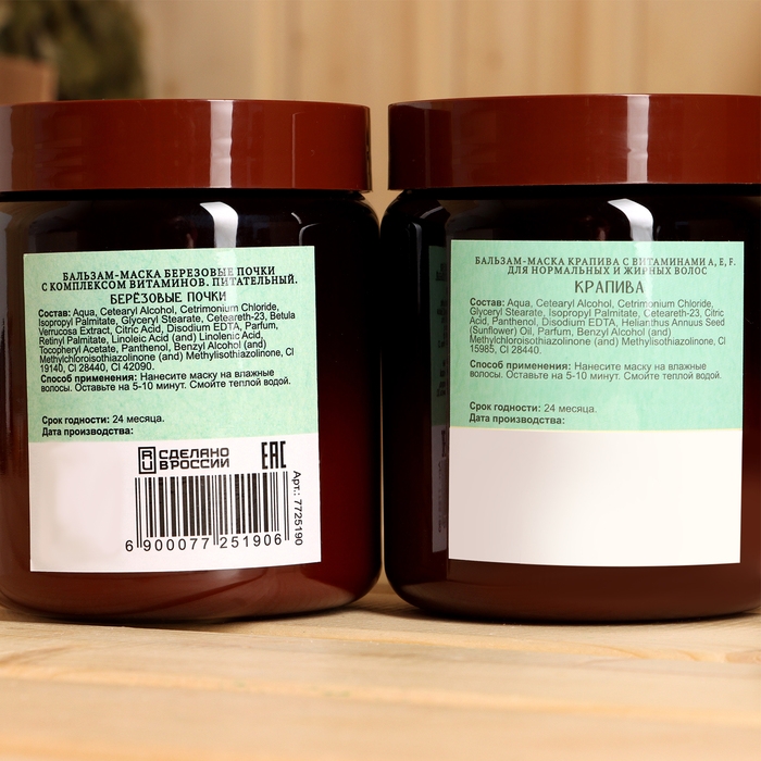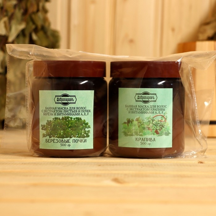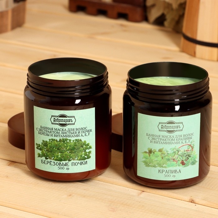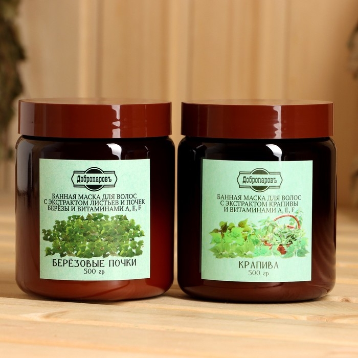 Набор витаминный ДобропаровЪ: маска для волос "Березовые почки", 500 мл + маска для волос "Крапива", 500 мл