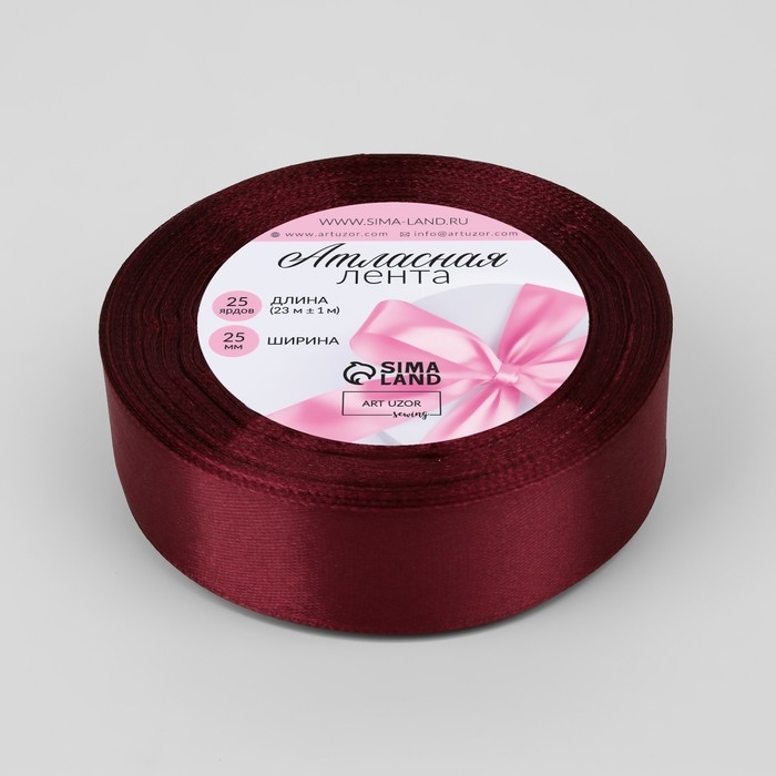 Лента атласная, 25 мм × 23 ± 1 м, цвет спелая вишня