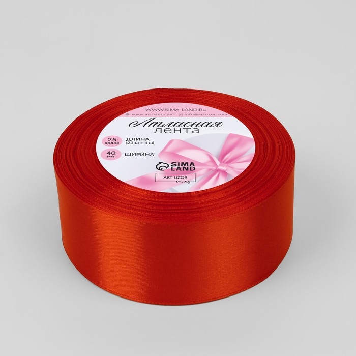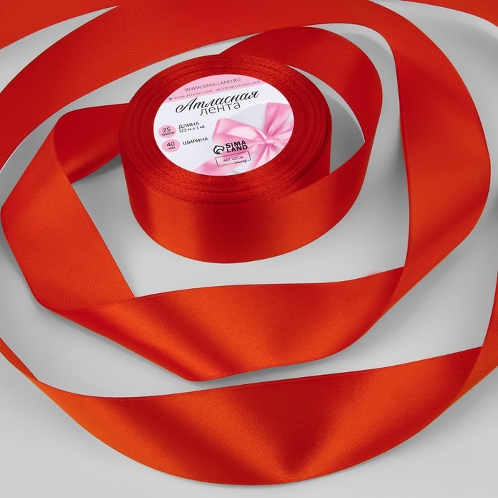 Лента атласная, 40 мм × 23 ± 1 м, цвет алый