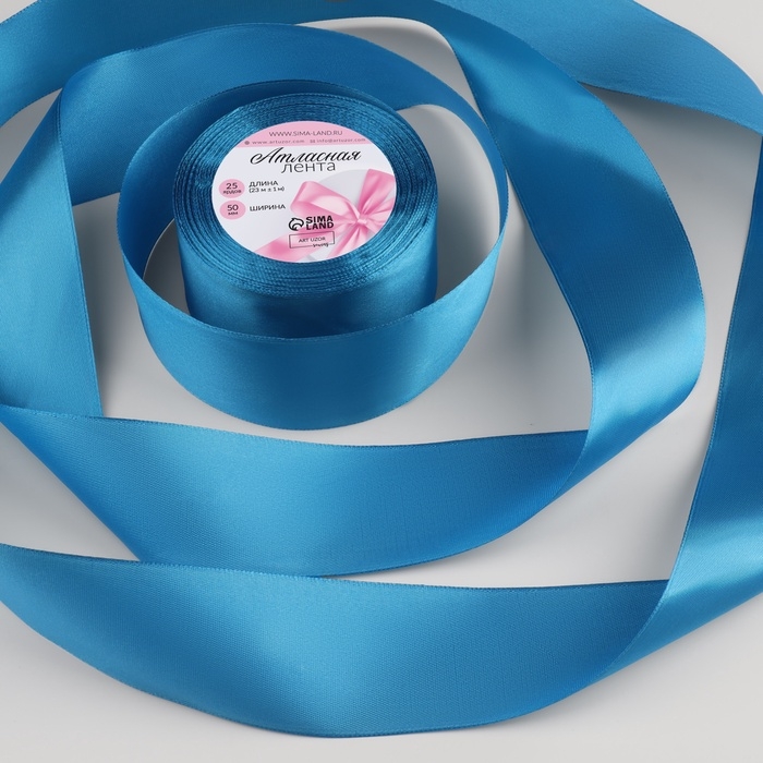 Лента атласная, 50 мм × 23 ± 1 м, цвет лазурный