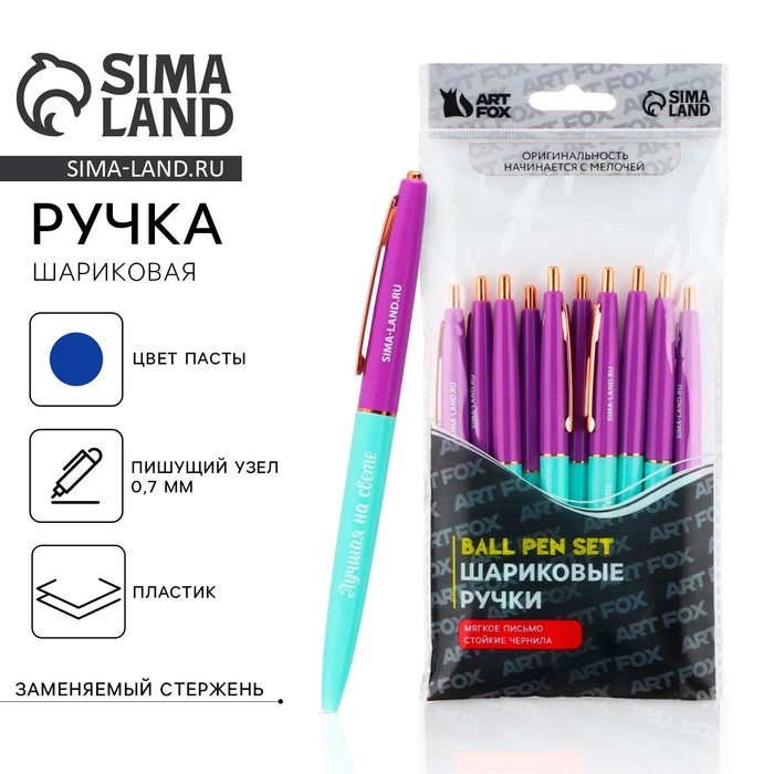 Ручка шариковая, синяя паста, 0.7 мм, автоматическая, пластик «Лучшая на свете»
