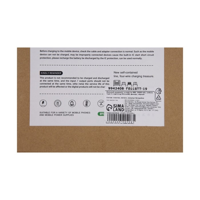 Внешний аккумулятор 486, 20000 мАч, кабели Type-C/Lightning/MicroUSB, фонарь, чёрный