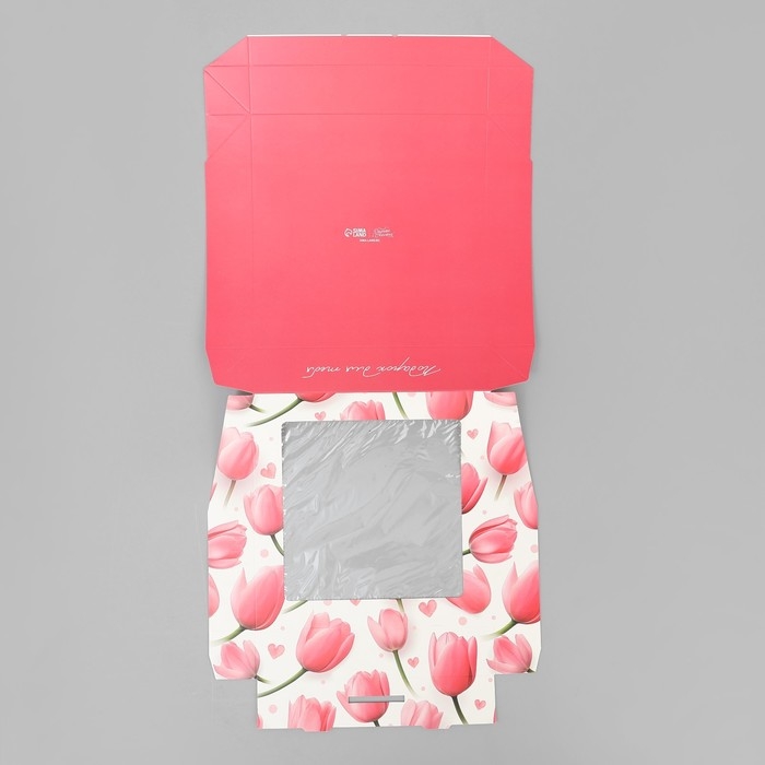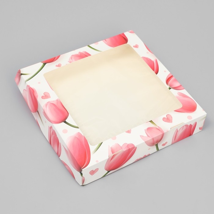 Кондитерская упаковка, коробка с ламинацией «Тюльпаны», 20 х 20 х 4 см