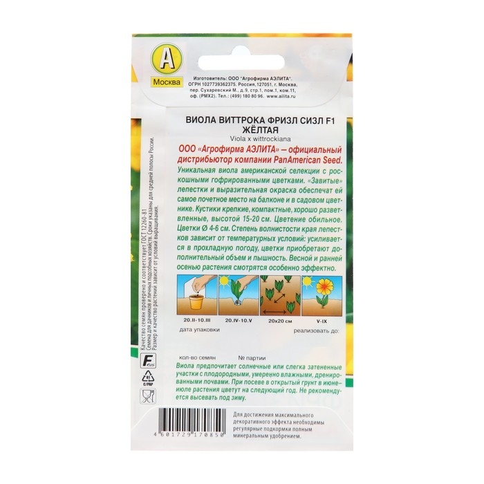 «Завитые» лепестки и выразительная окраска обеспечат новинке самое почетное место на балконе и в садовом цветнике. Кустики крепкие, компактные, хорошо разветвленные, высотой 15-20 см. Цветение обильное. Цветки ? 6 см. Степень волнистости края лепестков зависит от температурных условий. Она усиливается в прохладную погоду и цветки приобретают дополнительный объем и пышность. Весной и ранней осенью растения смотрятся особенно эффектно.Виола предпочитает солнечные или слегка затененные участки с плодородными, умеренно влажными, дренированными почвами. При посеве в открытый грунт в июне– июле растения цветут на следующий год. Не рекомендуется высевать под зиму.