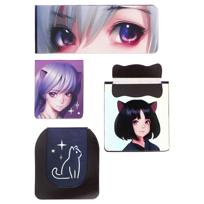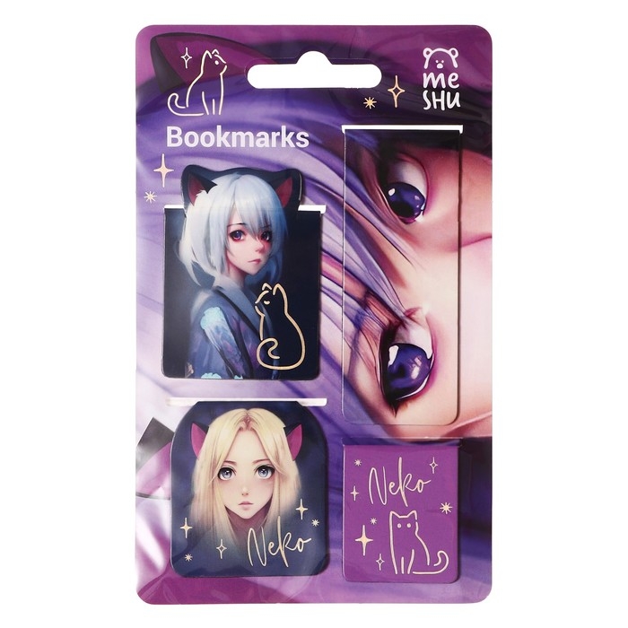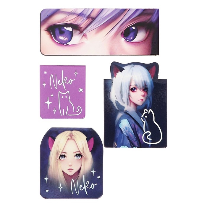 Закладки магнитные для книг, набор 4 штуки, MESHU "Neko"