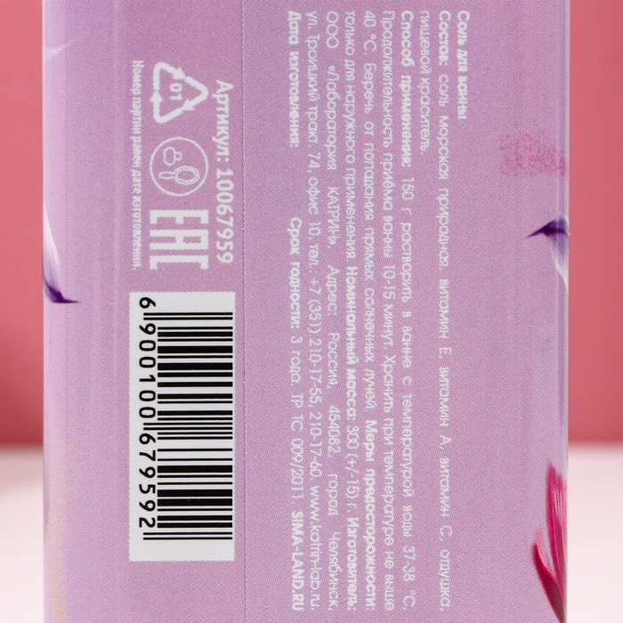 Соль для ванны «Сияй», 300 г, аромат нежной лаванды, ЧИСТОЕ СЧАСТЬЕ