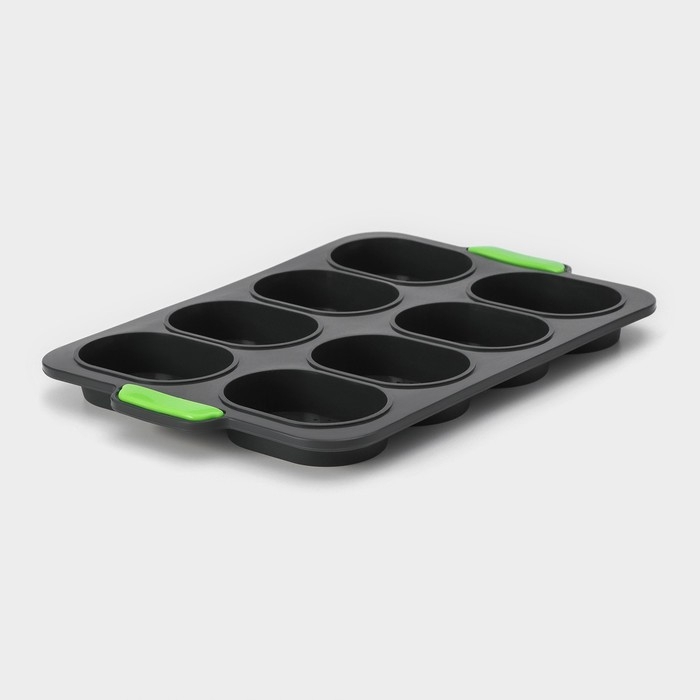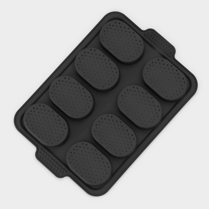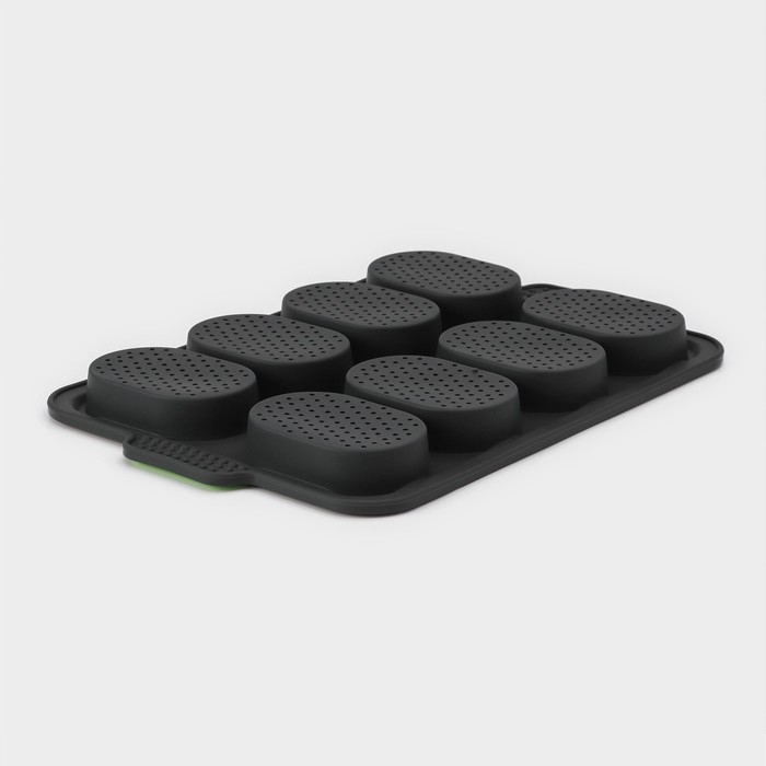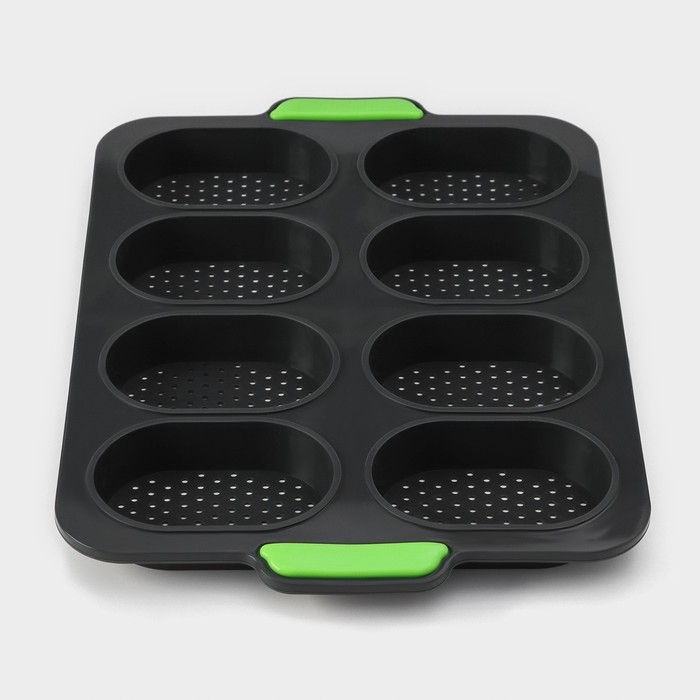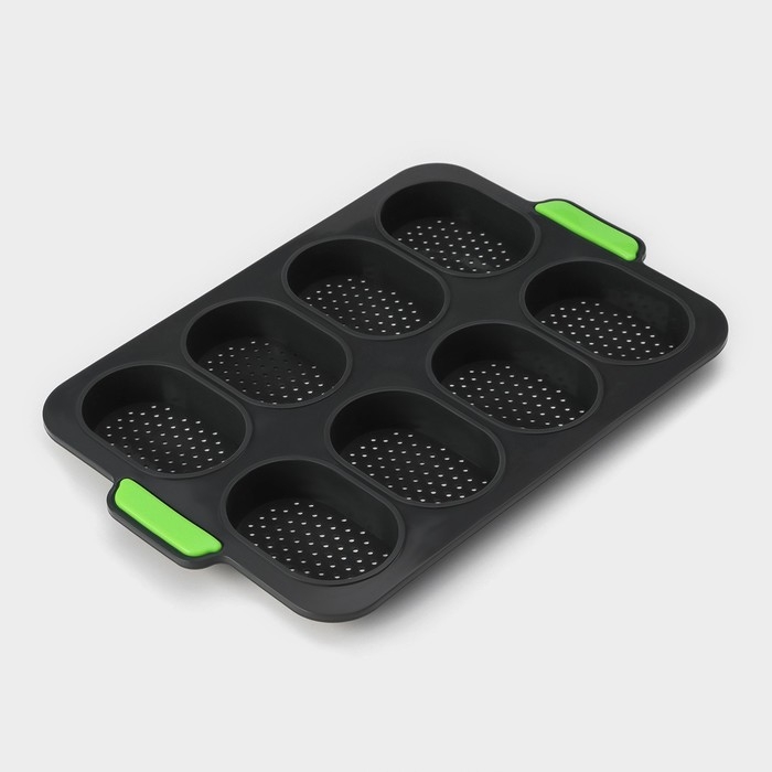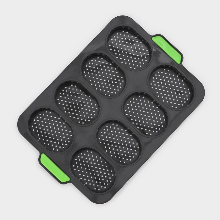 Форма для выпечки с перфорацией «Булочки», силикон, 34,5×23×2,5 см , 8 ячеек (9,5×6,3×2,4 см), чёрная