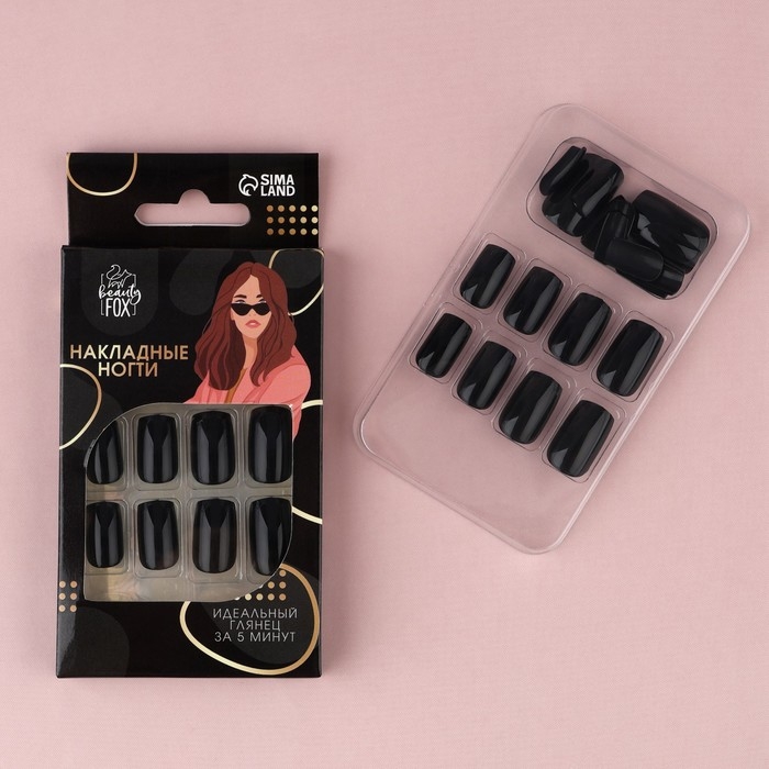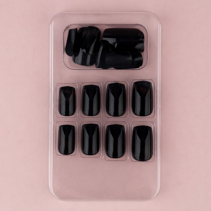 Накладные ногти «Однотонный чёрный», 24 шт, клеевые пластины, форма квадрат, цвет глянцевый черный