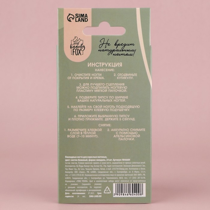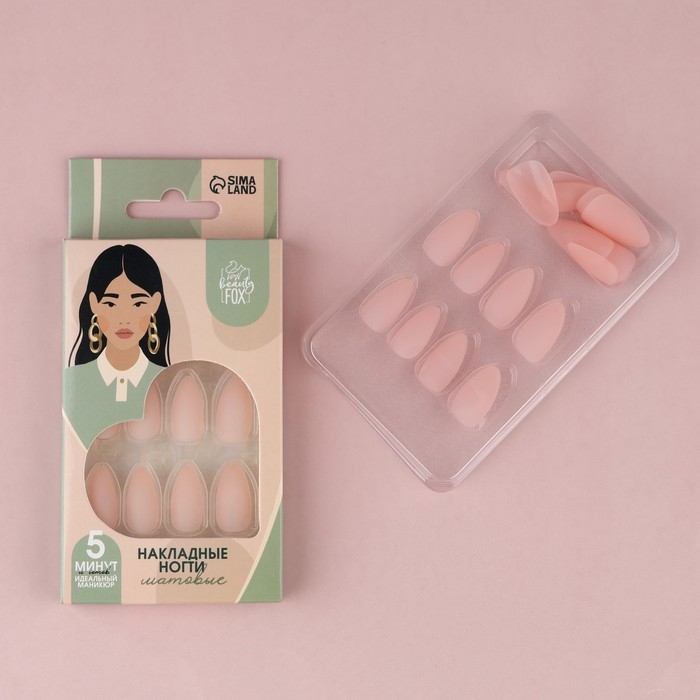 Накладные ногти «Естественные», 24 шт, клеевые пластины, форма миндаль, цвет матовый светло-бежевый