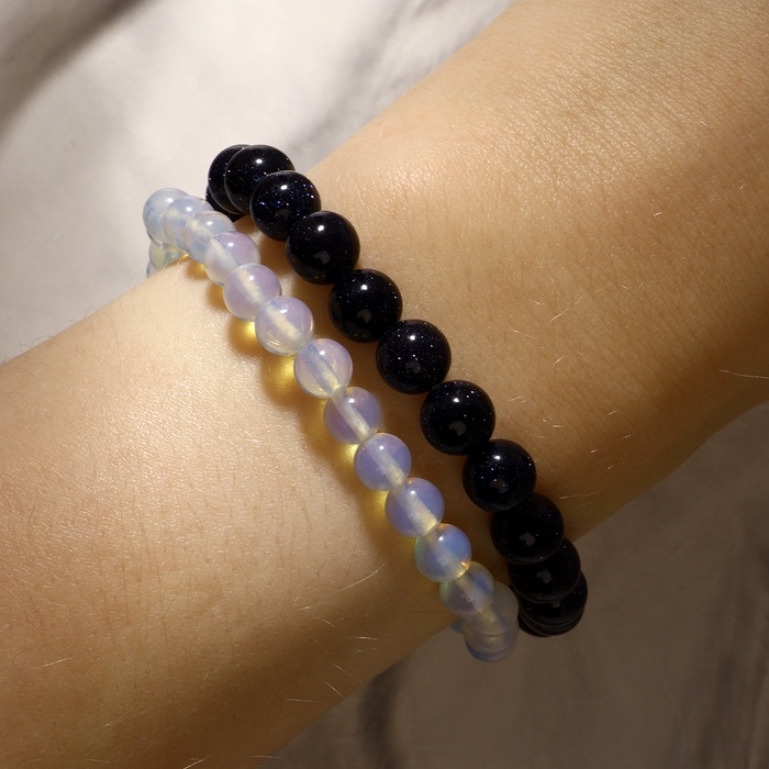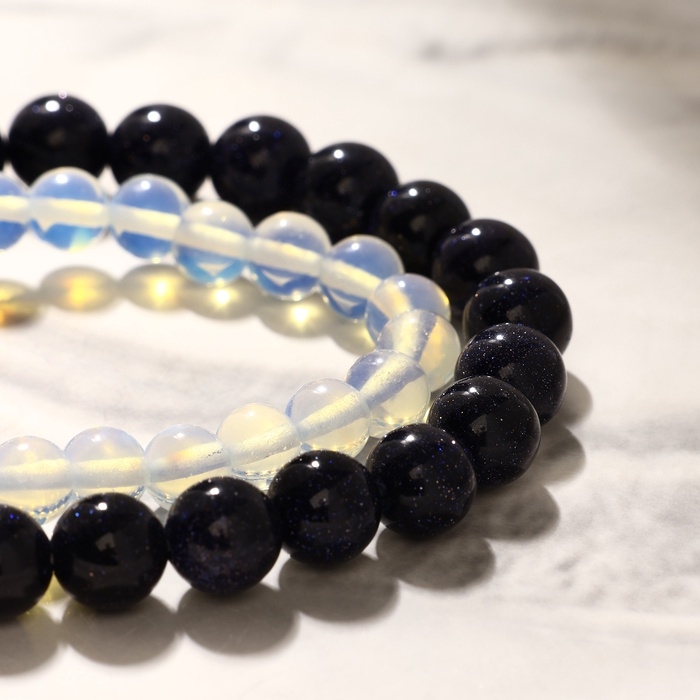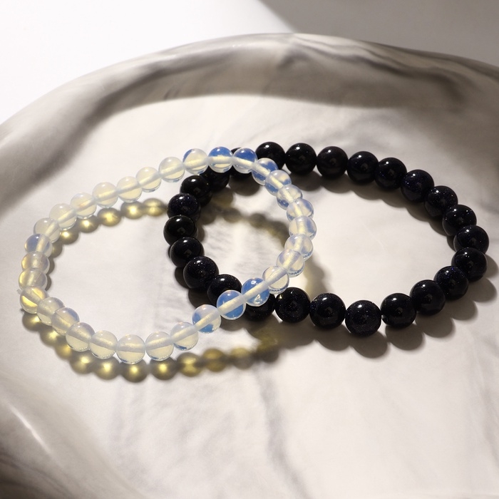 Набор браслетов шар №6 «Лунный камень» и шар №8 Авантюрин синий»