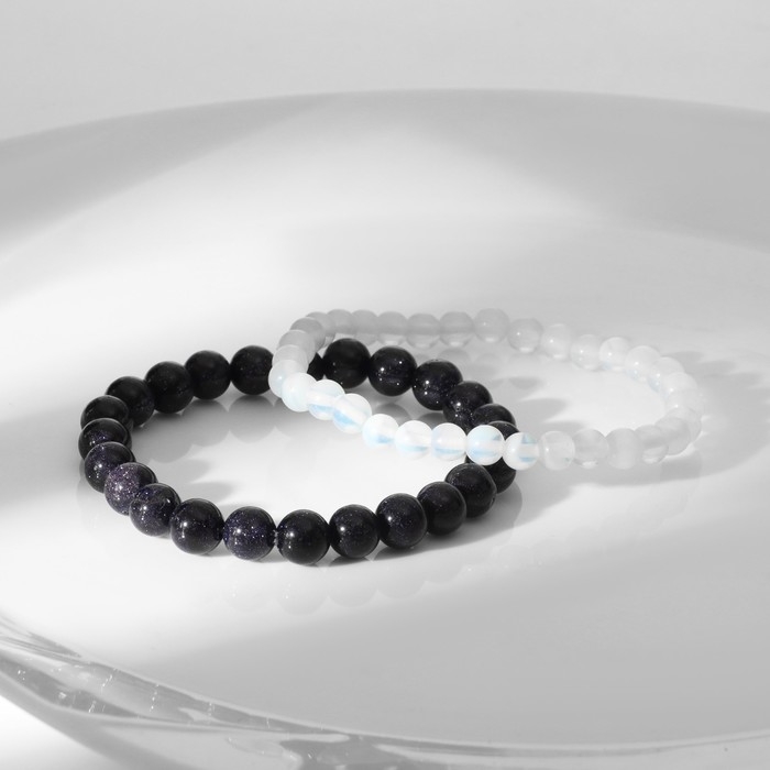 Набор браслетов 2шт шар №8 «Агат», цвет чёрно-белый
